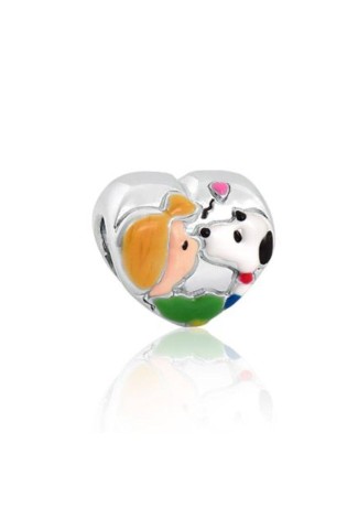Berloque feito em Prata de Lei em Formato de Coração esmaltado com o detalhe do Snoopy dando um beijinho na Sally, irmã caçula do Charlie Brown.