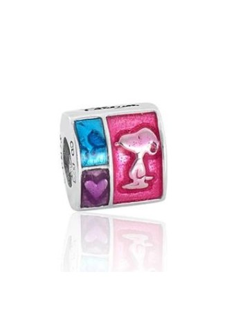 Berloque esmaltado feito em Prata 925 em formato de Coração com desenho esmaltado do Snoopy e d..