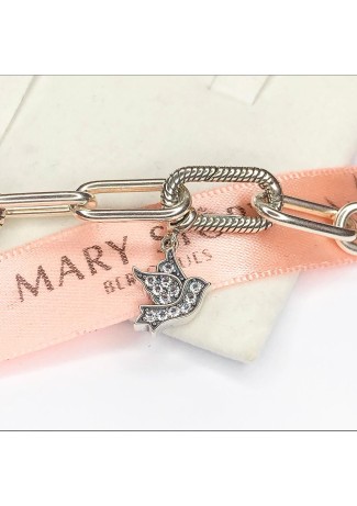 Berloque Borboleta Prata 925Zirconias Brancas Esmalte Rosa Compatível com Pulseiras C..