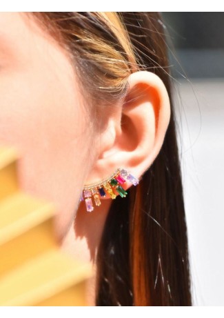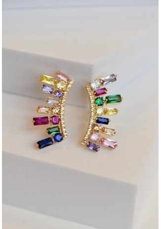 - Modelo: Brincos Earcuff zirconias coloridas dourado