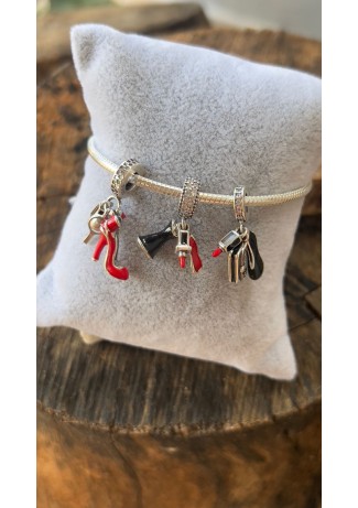 Berloque Sapato/ Vestido/ Batom Prata 925Compativel com Pulseiras Para berloques de outras marcas&nb..