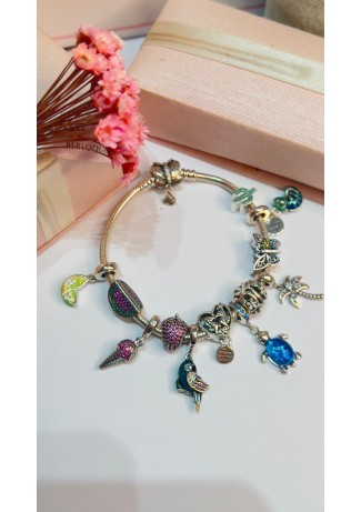 Pulseira Mary Story Berloque  Toda em Prata 925,Fecho Coração Cravejado Zirconias Brancas&..