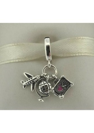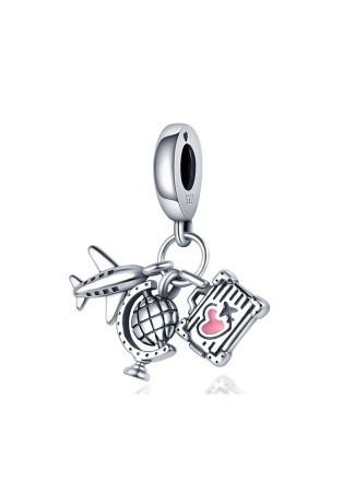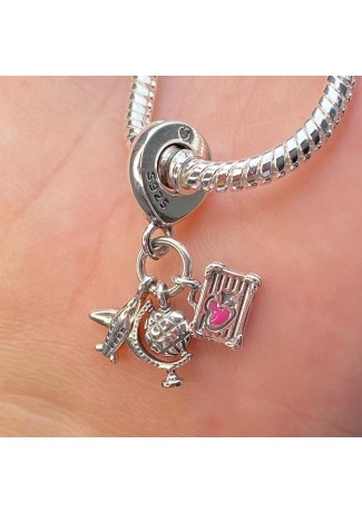 - Modelo: Berloque Amo Viajar Avião, Globo,mala Prata 925