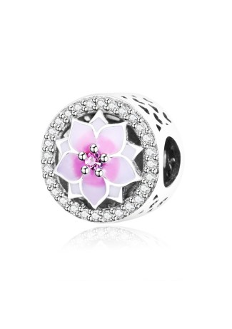 BE-145 Berloque Flor de Cereja Vintage Prata e Zirconias