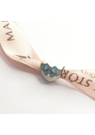- Modelo: Berloque Coração Laço Azul Prata 925 e Esmalte