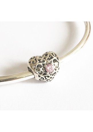 - Modelo: Berloque Coração Outubro Rosa Prata 925 zirconia Rosaa