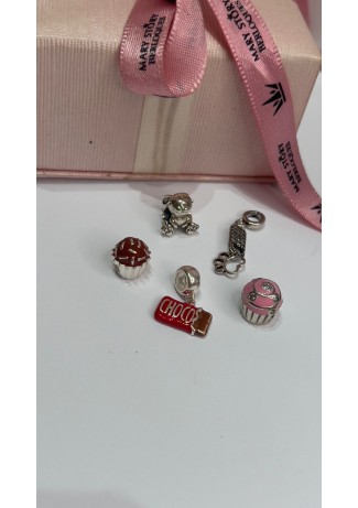 Berloque Love Chocolate Prata 925 Prata 925 Esmalte Vermelho Compativel com pul..