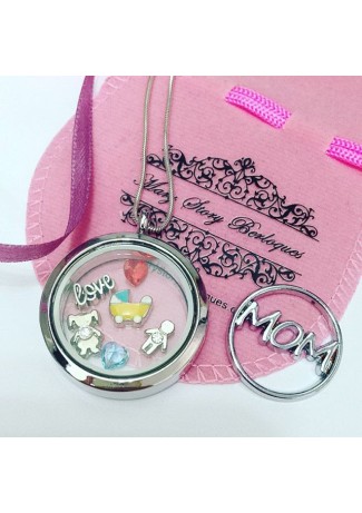 Pingente Amor de Mãe & Filho em Prata e Esmalte..