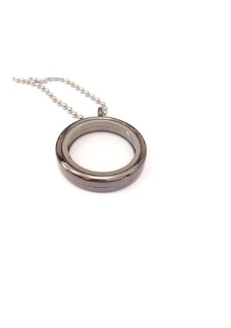 01- CAPSULA SECRETS 30" FECHO ÍMÃ REDONDA PRATEADO AÇO INOXIDÁVEL .01 Corrente 45 cmt V-..