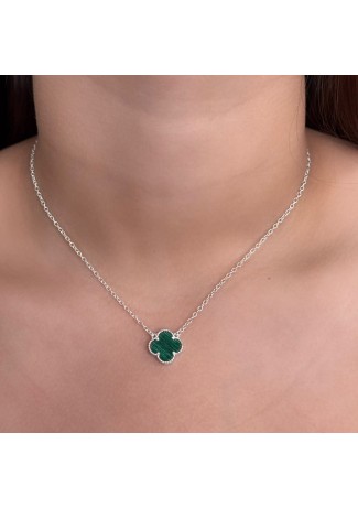 Gargantilha trevo V.C. Trevo Prata 925 Malaquita