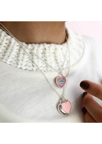 Gargantilha coração Tf cor rosa esmalte /Prata 925