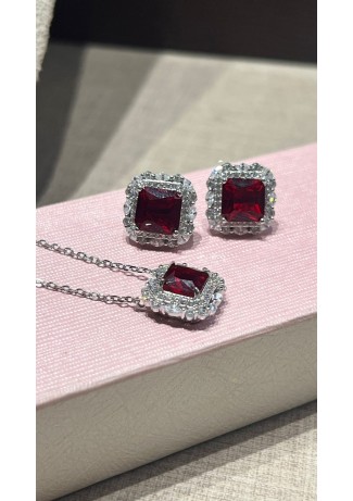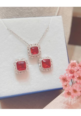 - Modelo: Conjunto Colar + Brincos Prata 925 Zirconias Rubi