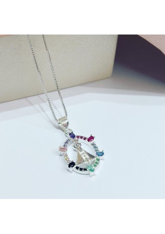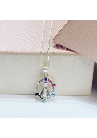 Gargantilha Nossa senhora Aparecida Zir coloridas Prata 925