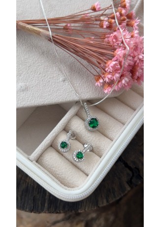 Conjunto Brincos& Gargantilha Prata 925 Zirconias Verde