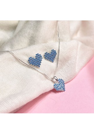 - Modelo: Conjunto Coração Azuis zirconias Prata 925