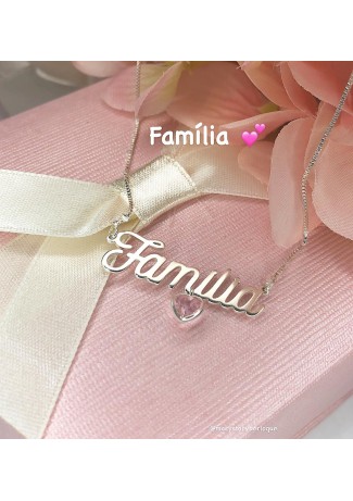 Gargantilha Mamãe em Prata 925 Zirconia RosaPrata 925Zirconias Rosa com coração zirconia  ..