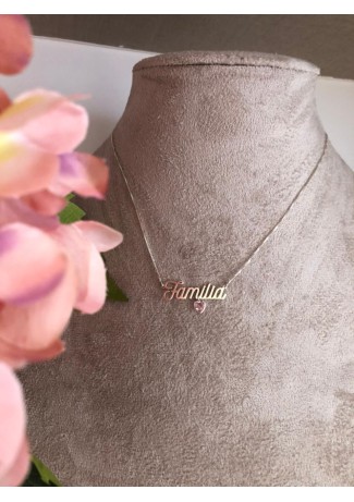 Gargantilha Mamãe em Prata 925 Zirconia Rosa