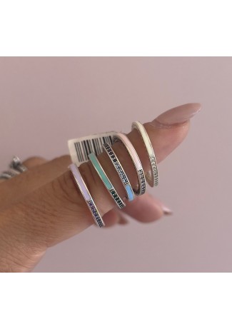- Modelo: Anel /Aliança Prata 925/ Esmalte e Zirconias Rosas