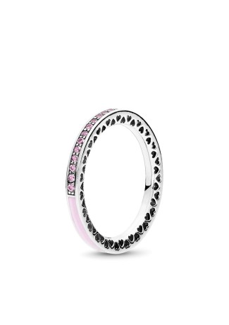 Anel /Aliança Prata 925/ Esmalte e Zirconias Rosa