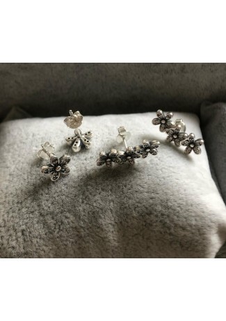 Brincos Flor Bem Me Quer em Prata 925e Zirconias Brancas