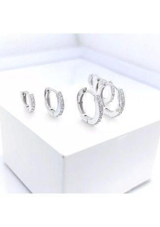 - Modelo: Trio de Brincos Argolas Cravejadas Prata 925