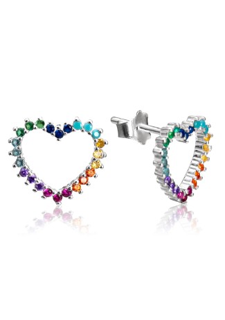 Brincos Coração Cravejado Colorido Prata 925
