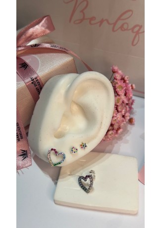 - Modelo: Brincos Coração Cravejado Colorido Prata 925
