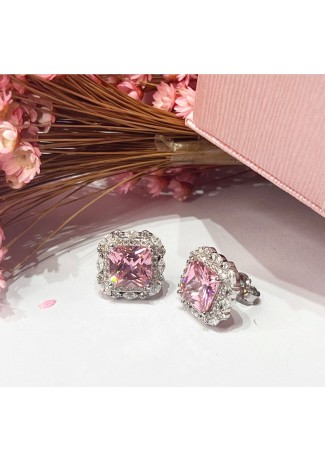 Brincos Luxo imperial Cravejado Rosa Prata 925