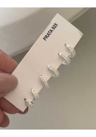 - Modelo: Brincos Trio Argolas Cravejadas Prata 925 Zirconias