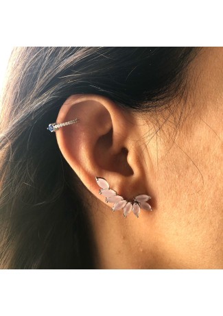 Brincos Ear Cuff em Prata e Pedra zirconias Rosa Claro.
