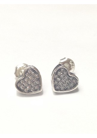 Br-20 Brincos Coração em Prata e Zirconias Brancas