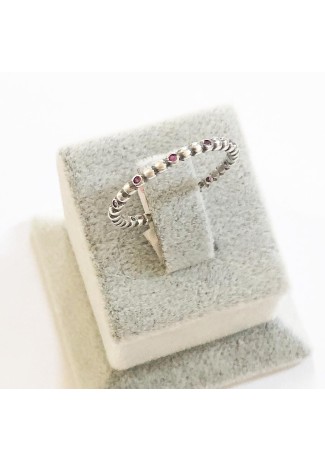 A-90 Anel Pontos em Prata e Zirconias Rubi