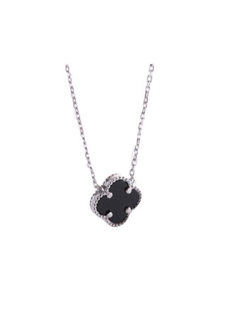 Gargantilha V.C Trevo Onix Prata 925 Cravejado
