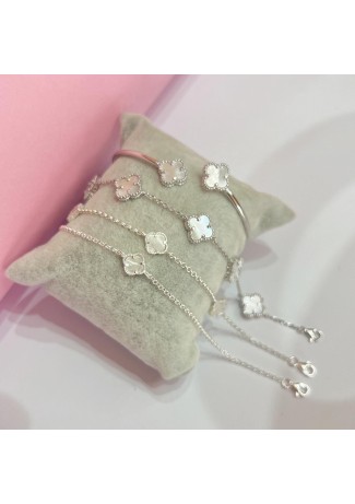 Bracelet V. C. Trevo Perola Prata 925Imagens Reiass da peça ajustável Prata 925..