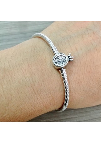 Pulseira Ajustável Coroa Cravejada Prata 925