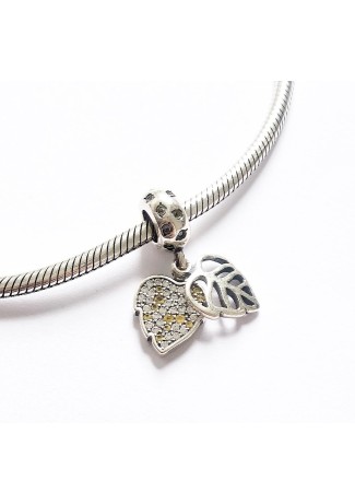 Berloque Folha Simbolo Natureza Prata 925Prata 925,ZirconiasEsmalte imagens reais da peça..