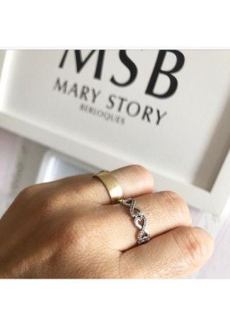 A-63 Anel Infinito Prata e Zirconias Brancas
