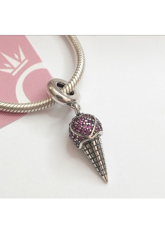 - Modelo: Berloque Sorvete cravejado zirconias vermelhas Prata 925