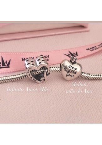 - Modelo: Berloque Coração love you Mãe infinito prata 925