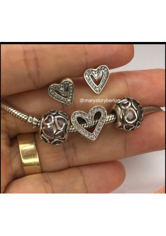 Berloque Coração Aberto Prata 925 & Zirconias Compatível com pulseiras para Berloques de ou..