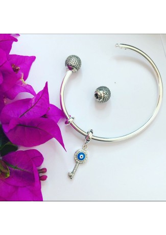 • Modelo: Berloque Chave Proteção olho Grego Cravejada Prata 925