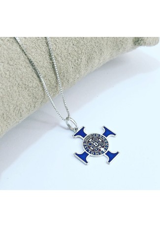 Gargantilha oração Cruz de São Bento Prata 925 e Esmalte
