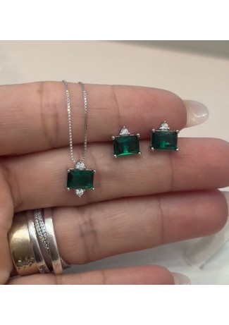 - Modelo: Conjunto Colar +Brincos Prata 925 l Esmeralda