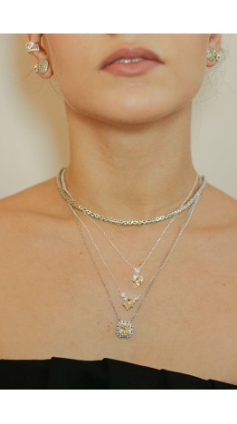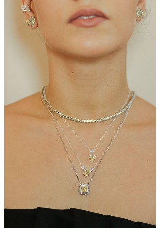 GARGANTILHA LETRA E PRATA 925 ZIRCONIAS