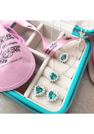 Gargantilha Coração Facetado zirconias verde Jade Prata 925