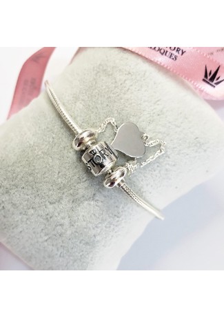 Pulseira Mary Story Berloque Toda em Prata 925,Fecho Coração Cravejado Zirconias Brancas&..