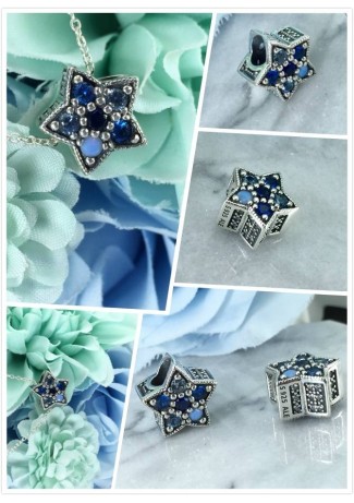 Berloque Estrela Cravejada Azul zirconias Prata 925