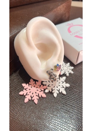 Brincos Urso ted pavê cravejados com olhos em zirconias onix