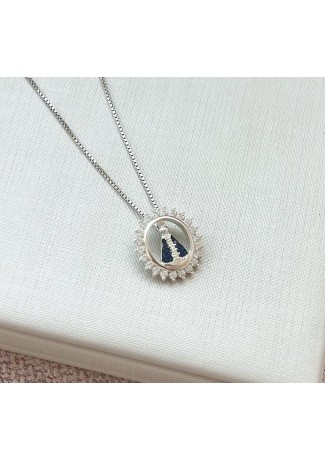 Gargantilha N. Sen. Aparecida Cravejada de sol/manto Azul safira prata 925