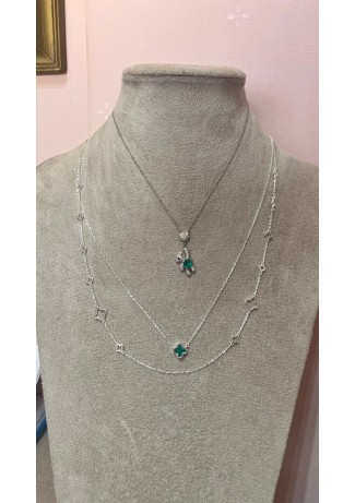 Gargantilha trevo V.C. Trevo Prata 925 Malaquita